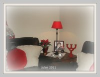 Jeg bytter lampeskjerm på bordlampene mine til jul, det må være litt rødt til jul, er du ikke enig?