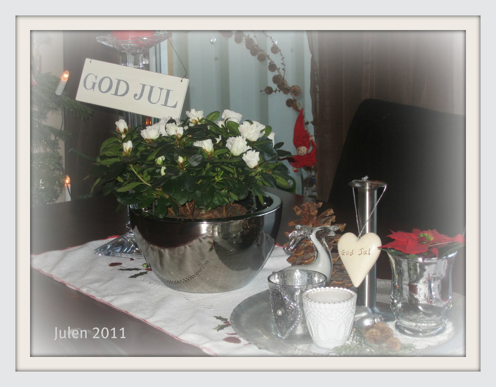 Har pyntet litt rundtomkring og i går kjøpte jeg endelig juleblomster og de siste gavene ble kjøpt♥