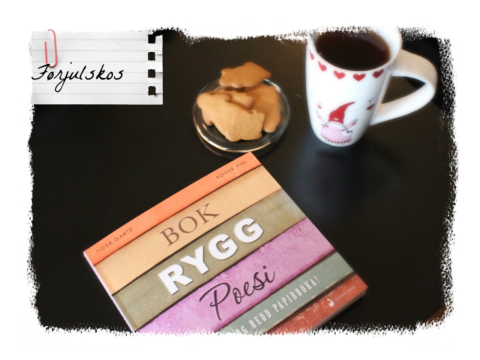 Morsom bok denne bokryggpoesi boken:) Har veldig veldig lyst å ta en titt i den kjenner jeg, er veldig nysgjerrig:)Så koselig ut med pepperkake å julete i julekrus:) Kos deg videre!:)