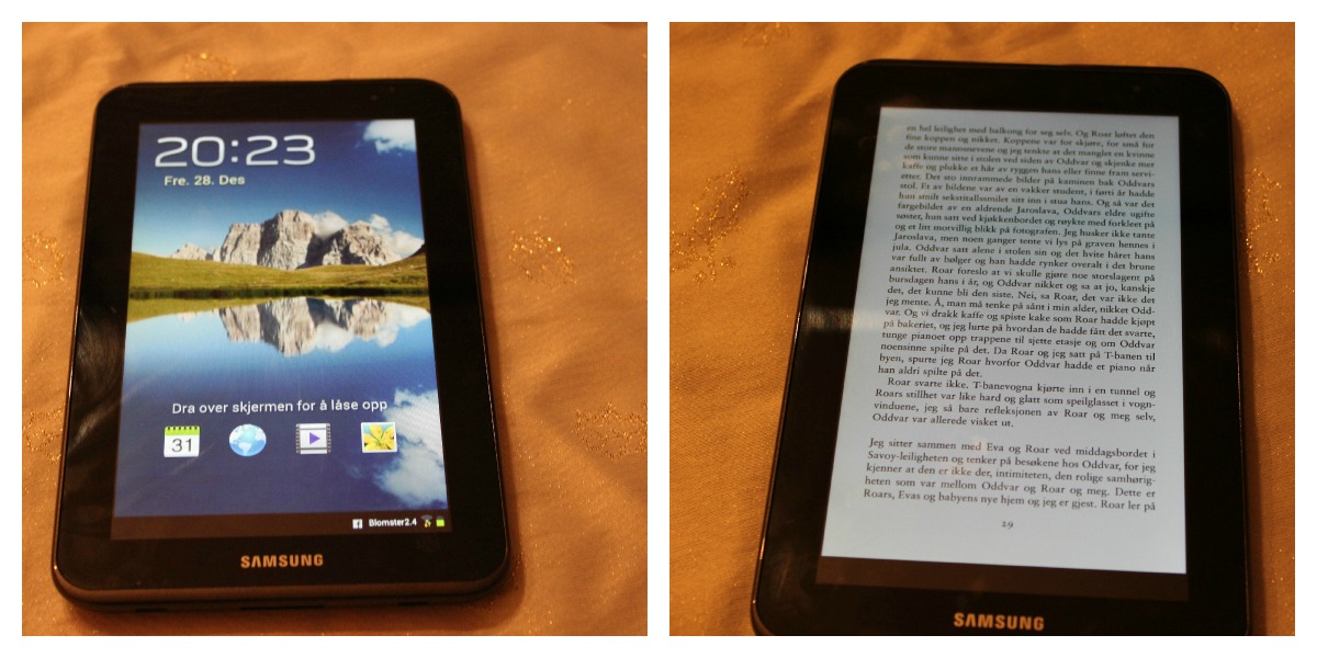 4. Gratulerer, har også Samsung galaxy. Bruker nesten ikke pc-en lenger. Du kan laste bøker direkte ned på brettet, har lastet ned to men har ikke fått tid til å lese dem ennå:)