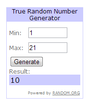 Har kåret en vinner av en signert utgave av «Innlandshete» av Kristine S.Henningsen  ved god hjelp av min gode venn Mr. Random.org. Det var 21 stykker som meldte seg på, og vinneren ble den som kommenterte som nummer 10.