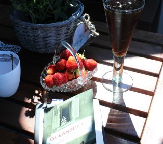 Nå titter solen såvidt frem på altanen min og det er tid for å sitte ute i solsteken å kose seg og hva passer bedre enn jordbær & pepsi max og selvfølgelig en god bok like i nærheten. Nå leser jeg  blant annet «Gurnsey forening…..» og den er skikkelig herlig så langt i hvert fall, jeg skal også lese videre i første bok om skyggejegerne som jeg holder på med.