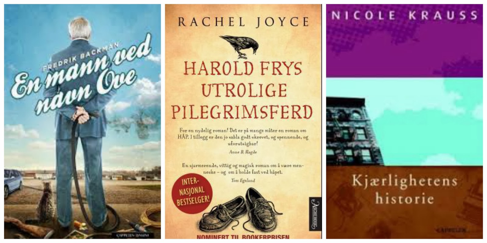 Jeg har nok ikke lest på langt nær like mye som deg, men jeg kan i det minste si at jeg har lest de tre nye bøkene du har bilde av- og jeg likte dem alle! De er nok ganske ulike, men hvis jeg skal gi favorittstempel til én av dem, så blir nok det «Kjærlighetens historie»- men Ove på en god andreplass!