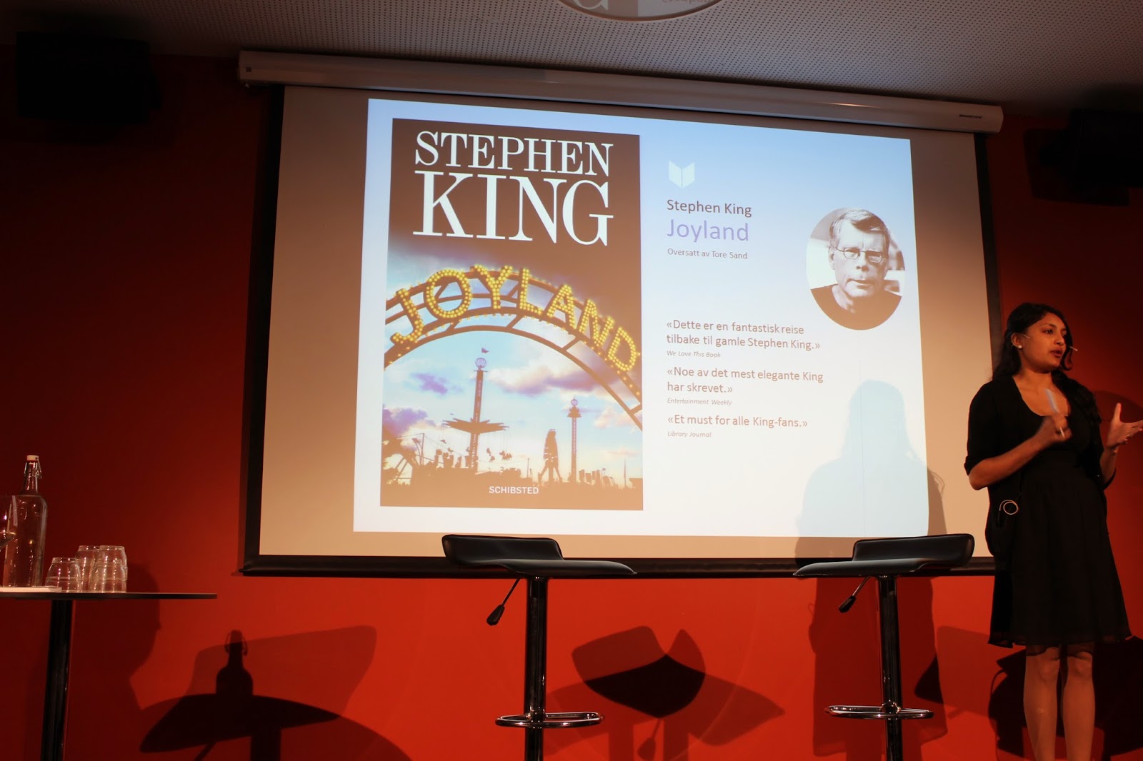 Stephen King har jeg enda tilgode å lese noe av, det er nesten litt flaut å si det. Men han har mange bøker som jeg kunne tenke meg å lese, blant annet denne nye som heter Joyland, her presentert av Dilani.