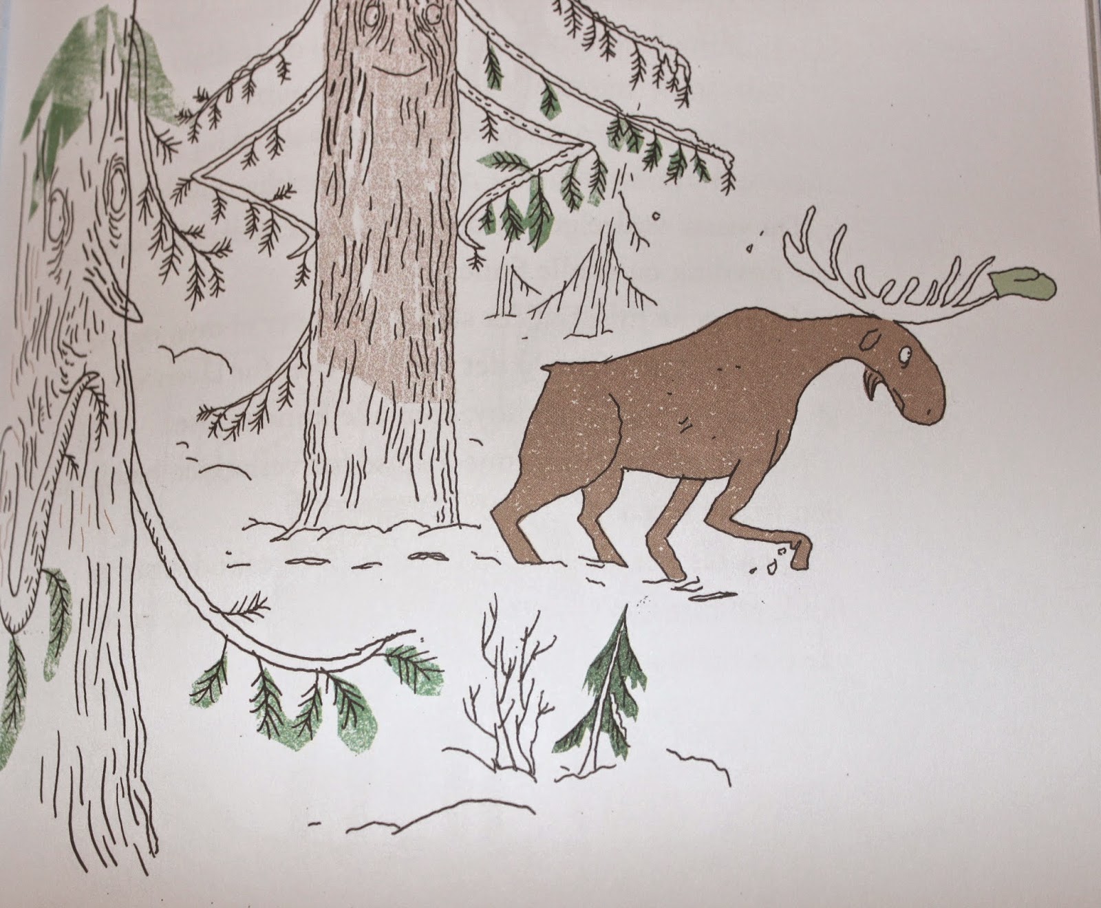 Vottegrana ventet til den vesle elgen hadde gått helt under grenene hennes, da bøyde hun forsiktig på vottegrenen og smøg votten over hornet på elgen.