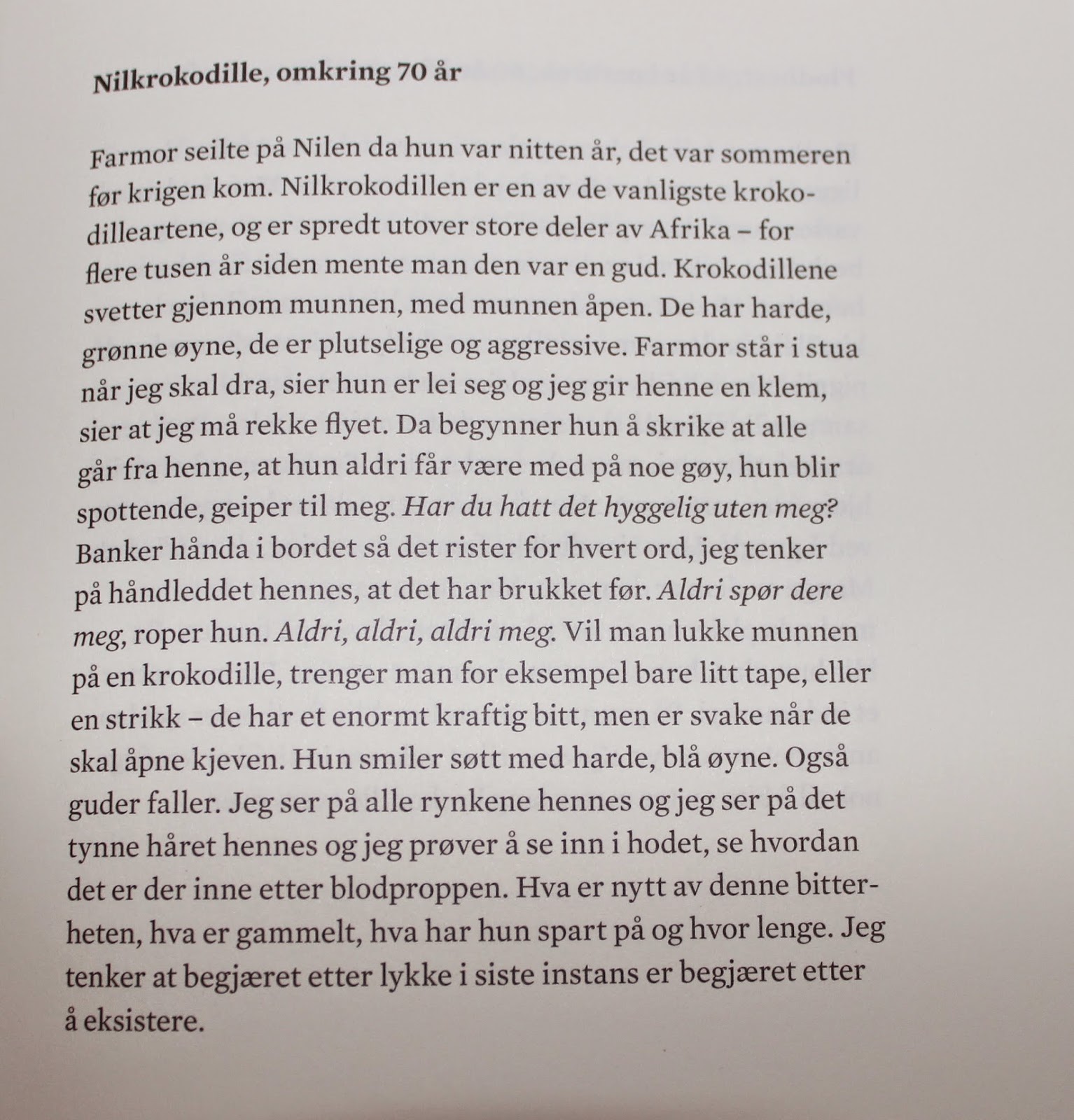 2. Jeg hadde en herlig ettermiddagsstund med «Hver morgen kryper jeg opp fra havet». På forhånd hadde jeg hørt mye positiv omtale av den på radioen. Nå ble jeg derfor fristet til å lese denne. Jeg har ikke undersøkt saken, men antagelig må jeg også spesialbestille denne fra NLB. Fortsatt god helg! 🙂