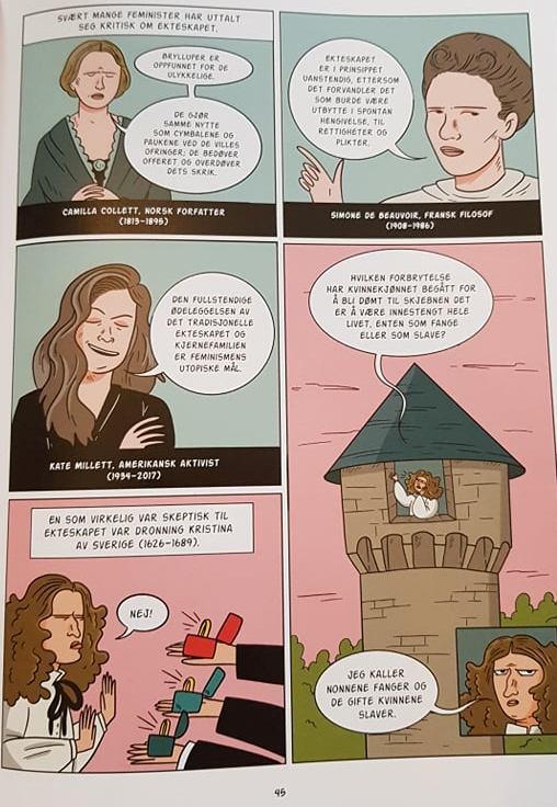 Selv om jeg syntes at det var et artig grep å kåre historiens verste antifeminist helt på slutten av boken som et symbol på patriarkatets fall kunne de kanskje i stedet eller i det minste i tillegg hatt med det som foregår nå for patriarkatet lever jo i beste velgående, vi kan jo bare se til vårt naboland Sverige og det som skjer med Cissi Wallin for å nevne et eksempel. Der virker det ikke som kvinner har den rettsikkerheten som vi egentlig tar for gitt at vi har i et vestlig land.