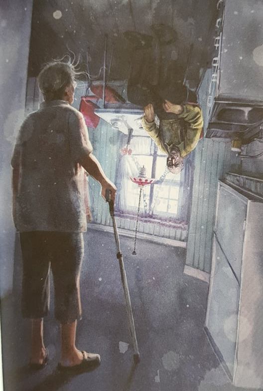 Klara er ikke den eneste av personene vi får møte som har begynt å bli senil,men det hender jo dessverre at man begynner å rote litt når man blir eldre. Flere av historiene handler om ensomhet, noen fordi de har mistet kone eller mann, andre fordi de har valgt å leve livet alene. Mens andre igjen har drukket seg fra hus og hjem. Andre, som for eksempel Bergljot er på besøk hos sønn og svigerdatter og kjeder vettet av seg. Hun har ingenting til overs for barnebarnet Ea som hele tiden sitter med nesen ned i mobilen, og så viser det seg at de er mer lik hverandre enn man kanskje kunne tro. Noe illustrasjonen under viser ganske godt.