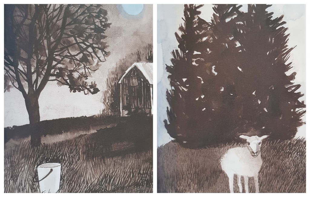 Boken er illustrert av svenske Anneli Furmark og tegningene i disse mørke tonene passer utrolig godt til den dystre tonen som finnes i boken og er med på å forsterke disse.