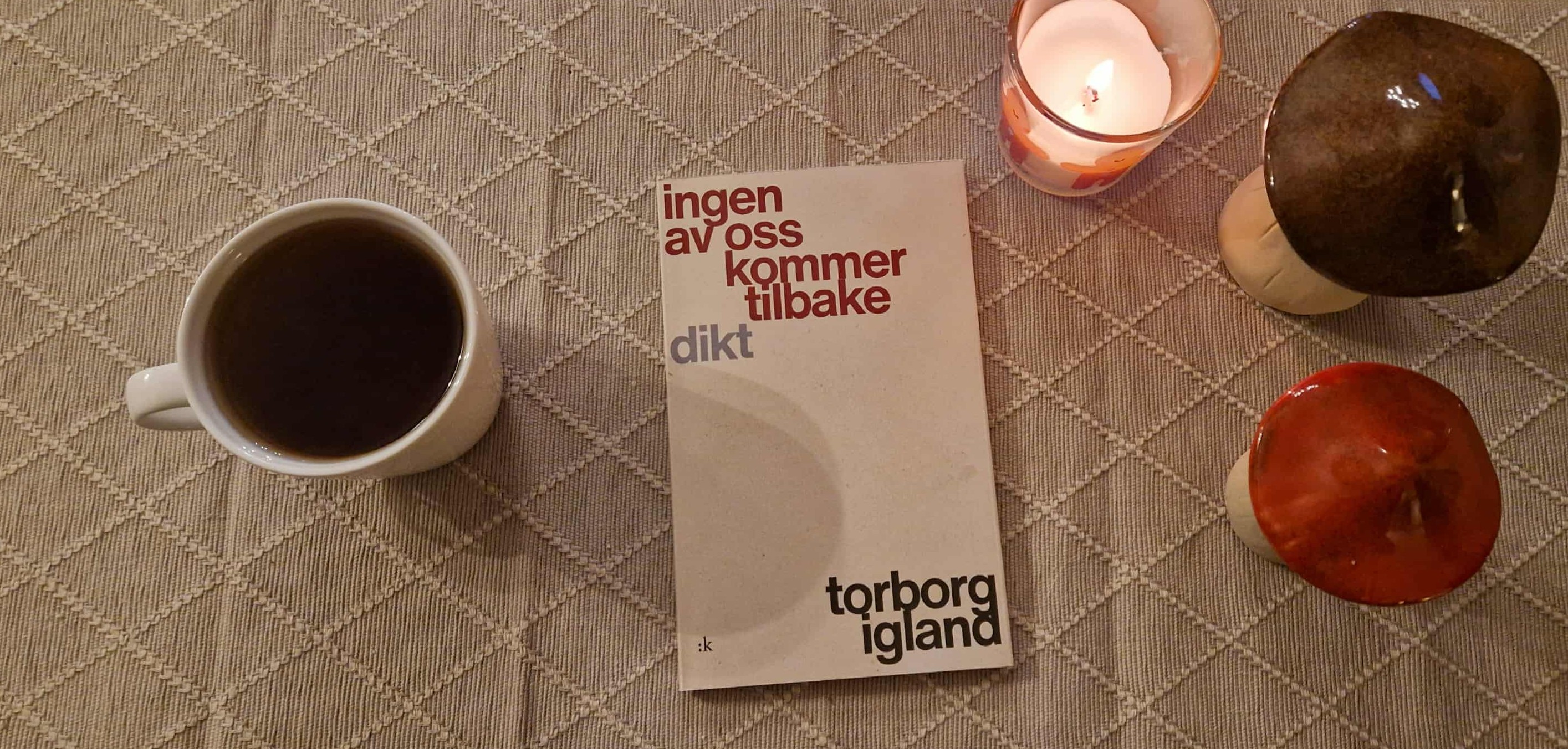 Det siste halve året har jeg slitt med en lei lese-sperre og i den forbindelse har jeg begynt på en rekke bøker i ulike sjangere i et håp om at det skulle gå over, for det satt veldig lenge i denne gangen. Poesi-bøker er blant bøkene jeg har prøvd meg på og det ser ut til å fungere. Nå er det ikke slik at det har vært full stopp på lesingen, men for meg som er en storleser blir det lite å lese toppen 3-4 bøker på en måned. Torborg Igland sin diktbok,Ingen av oss kommer tilbake, som jeg skal snakke om i dag, er den eneste boken jeg leste i oktober, da er det bra at det var en diktbok som gjorde skikkelig inntrykk på meg for det er en solid diktdebut Igland leverer her. Nå har Torborg Igland vært forfatter lenge og har skrevet både barne-og ungdomsbøker, men dette er hennes første bok for voksne.